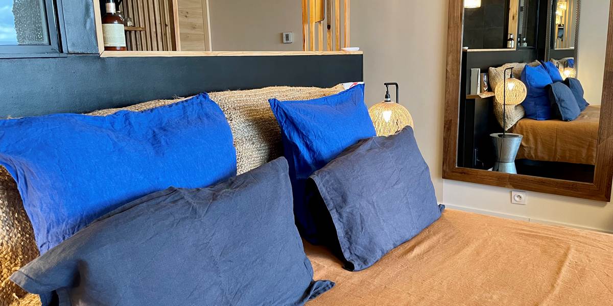 De l'espace et de la douceur dans le lit Queen-size et son linge de lit en lin lavé…